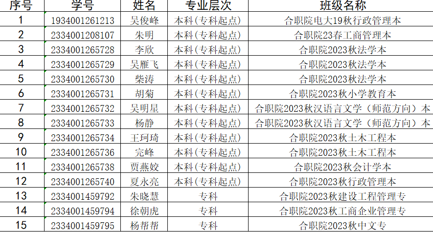 二、提前批次毕业初审通过学生共计15人,其中本科12人,专科3人,具体名单如下: